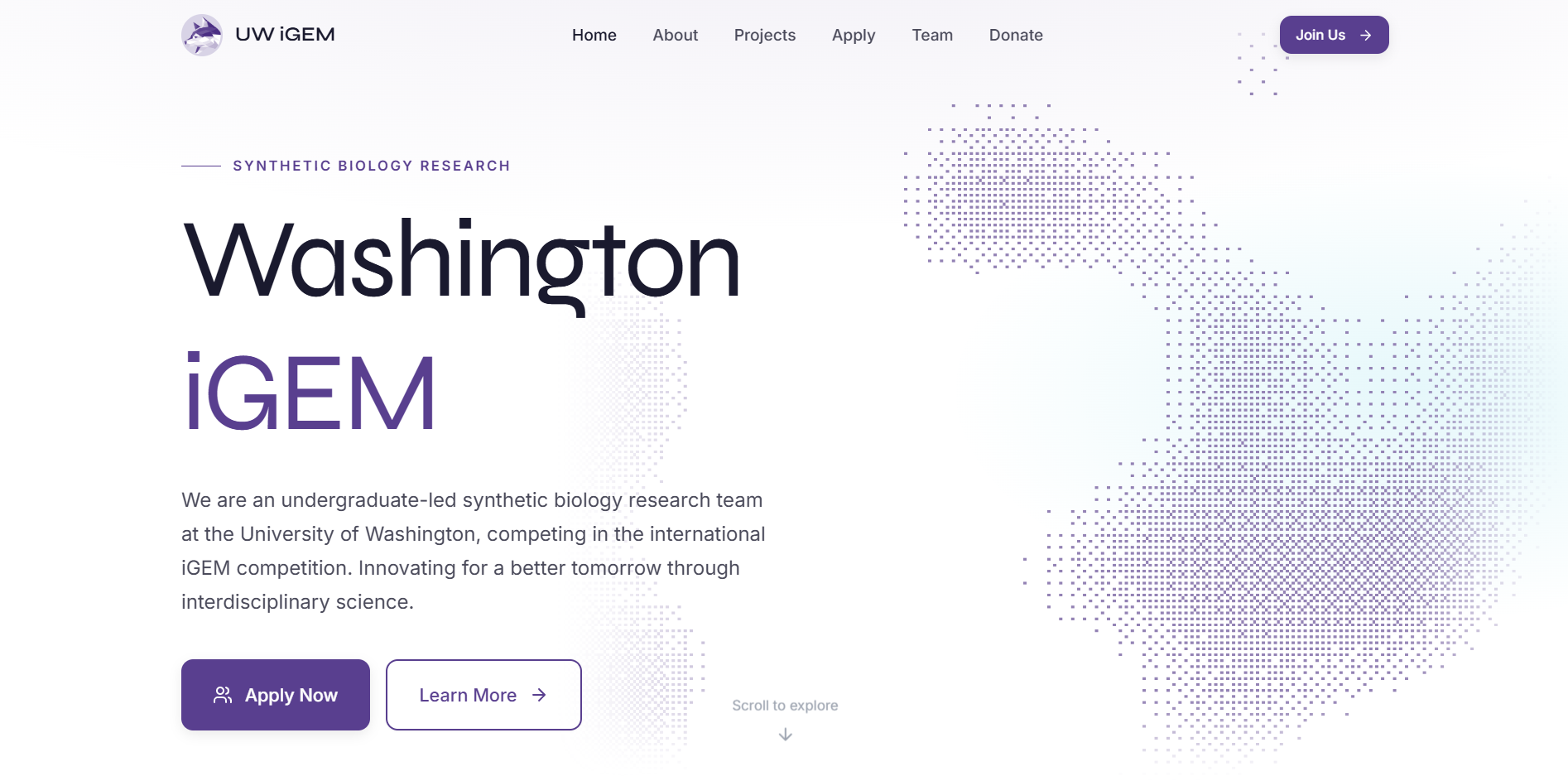 The 2026 WebDev team redesigned and updated the Washington iGEM team website to better communicate the team's research, structure, and recruitment opportunities.